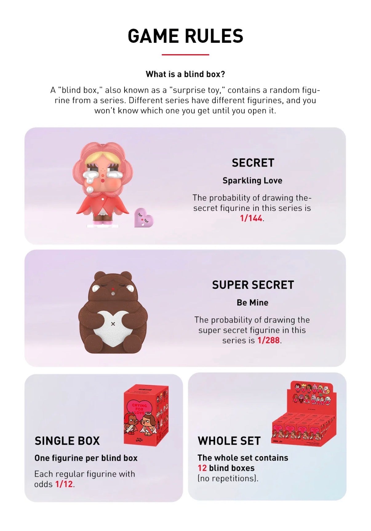„Blind box”, nazywany także „zabawką niespodzianką”, zawiera losową figurkę z danej serii. Każda seria ma różne figurki i nie wiesz, którą otrzymasz, dopóki nie otworzysz pudełka.