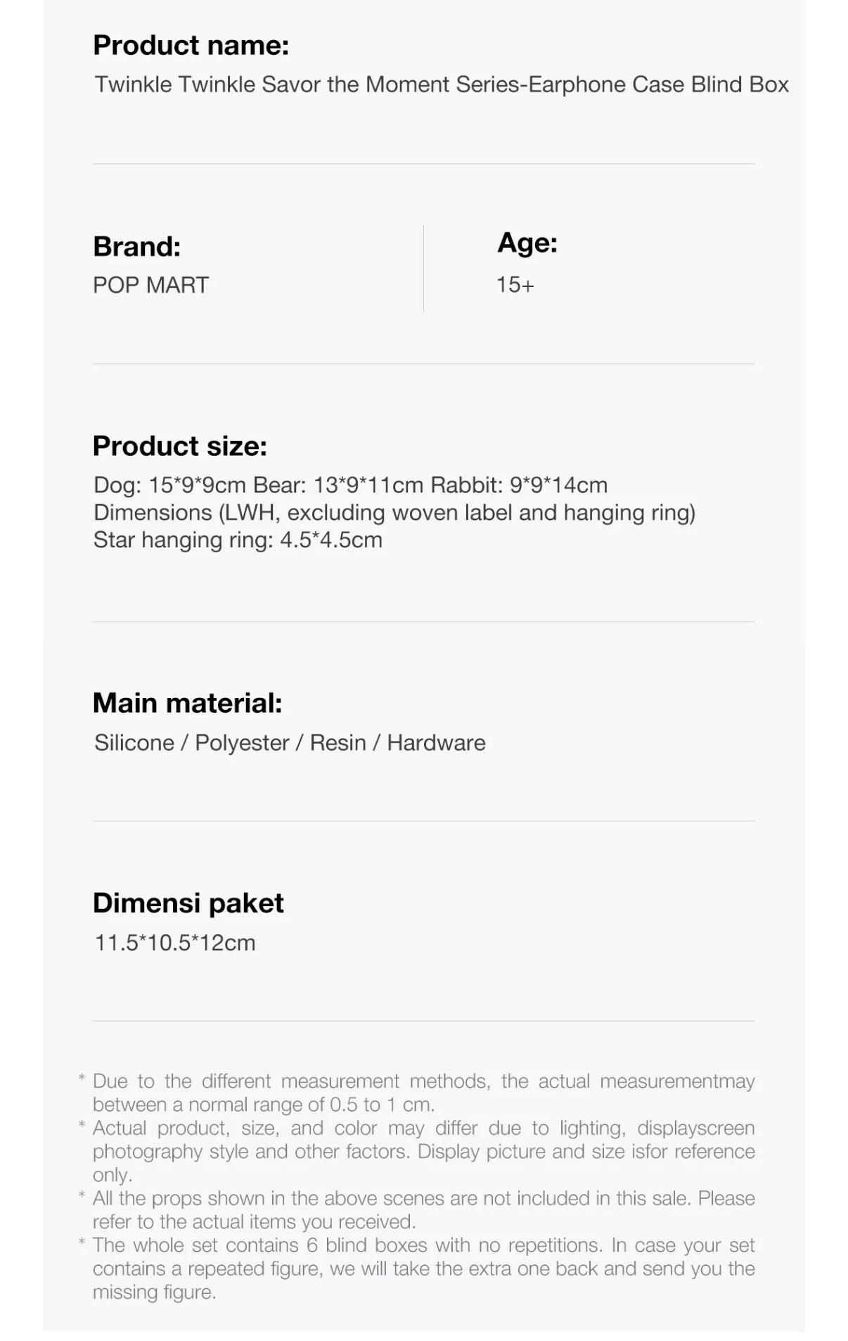 * Cały zestaw zawiera 6 blind boxów bez powtórzeń.