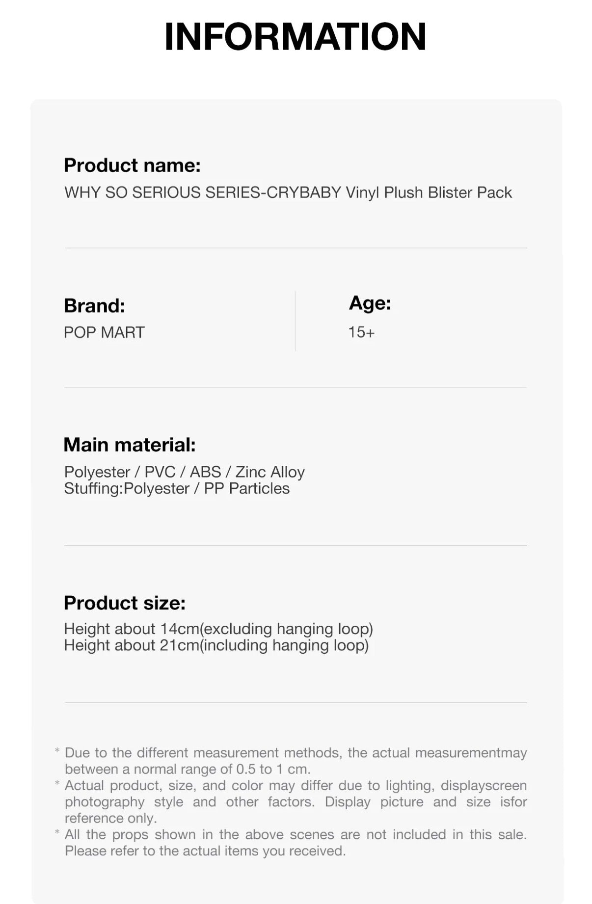WHY SO SERIOUS SERIES – CRYBABY Vinyl Plush Blister Pack